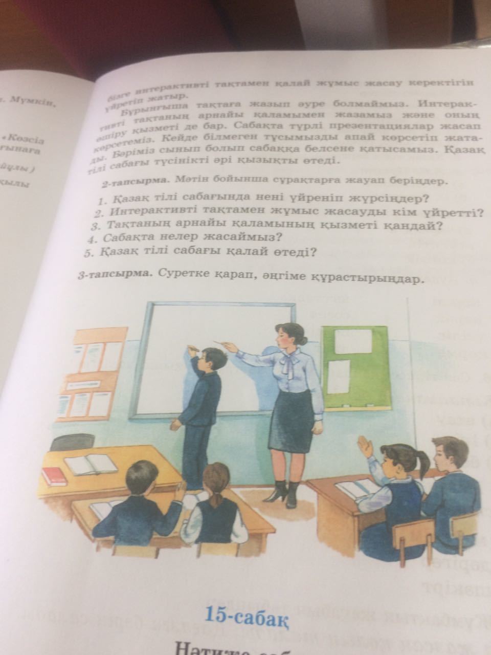 бүл суретте əсет тақтаға шыкты .мұғалім оған дұрыс жазып тұрған ның қарап тұр. балалар қолдарын күтеріп отр. əсет тақтада шығаралмай тұр.