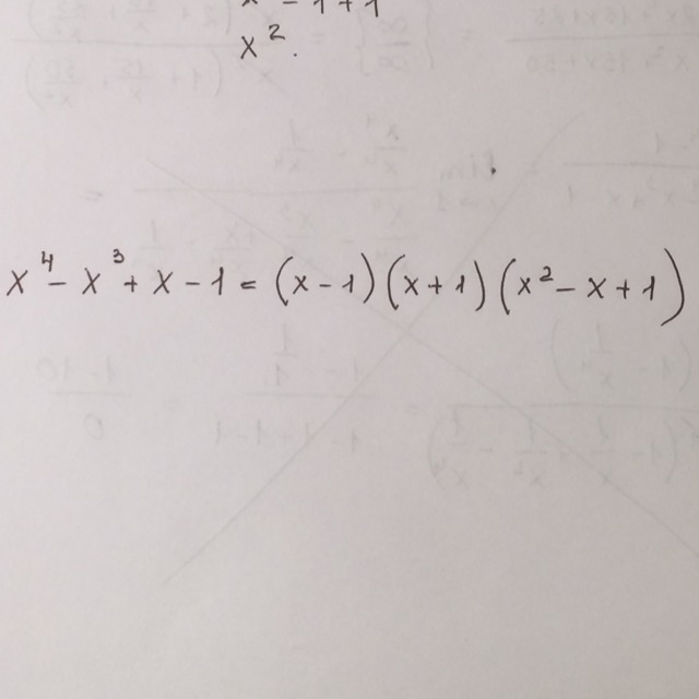(x^{4}-x^{3})+(x-1)=x^{3}(x-1)+(x-1)=(x-1)(x^{3}+1)= \