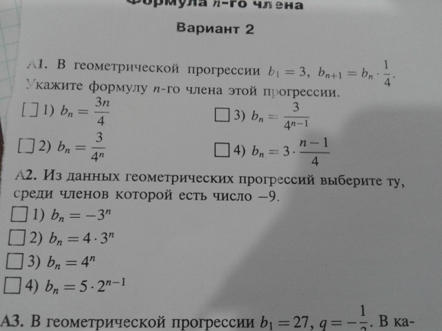 1) в1=3 g=1/4 bn=b1*g^(n-1)= 3* (1/4^ (n-1))=3*1 /4^(n-1=3/4( n-1