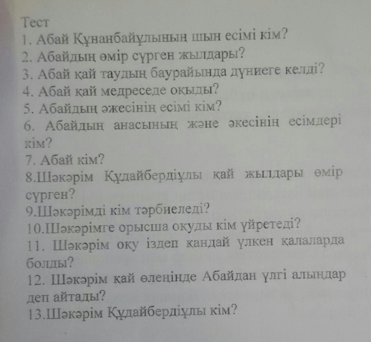 1 Шын аты- Ибраһим. 2 1845-1904 3. Шығыс Қазвқстан облысы Абай ауданында дүниеге келген. 4. Медреседе оқыйды.5 Зере әжесі.6 Анасының аты Ұлжан әкесінің аты Құнанбай. 7 Абай табиғатты шебер жырлаған табиғатқа жан бітірген лирик ақын.