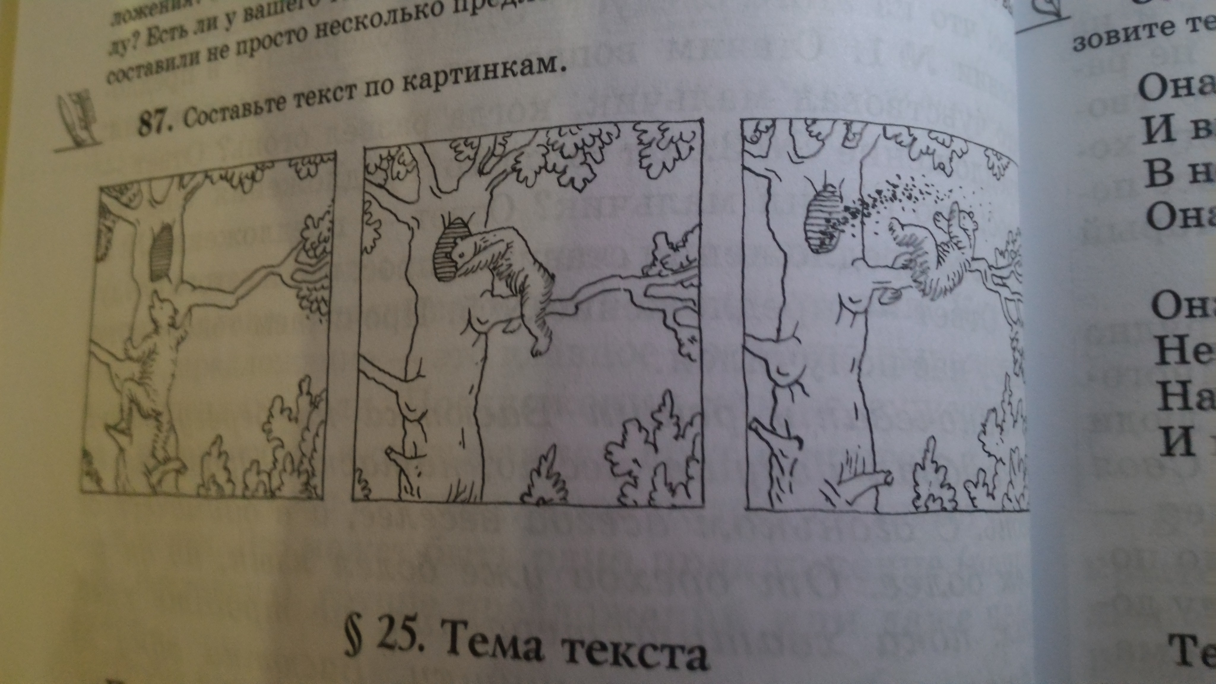 Один раз медведь захотел по лакомиться вкусным мёдом.Он залез на дерево и начал добывать мёд.Но пчёлам не понравилось что медведь ест и рушит их труды и искусали его.Он упал на землю,встал и запомнил что лутьше