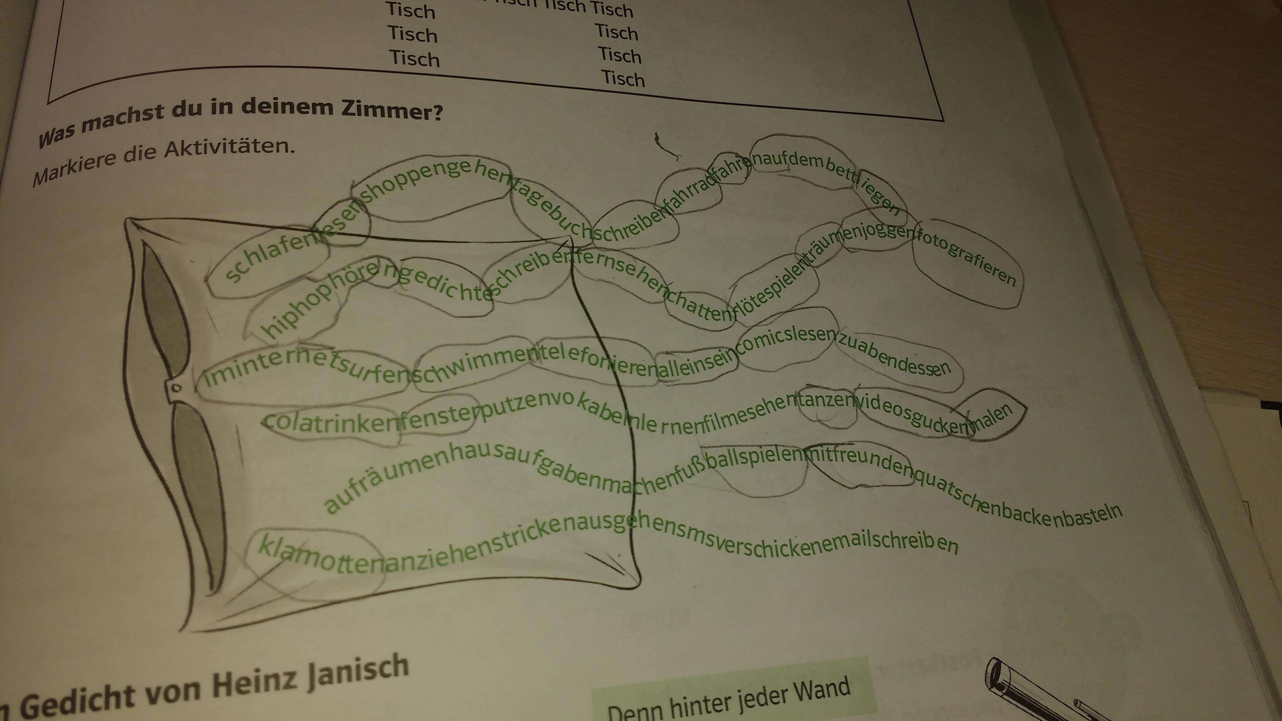 Cola trinken, Fenster putzen, Vokabeln lernen, Filme sehen, Tanzen, Videos gucken, malen