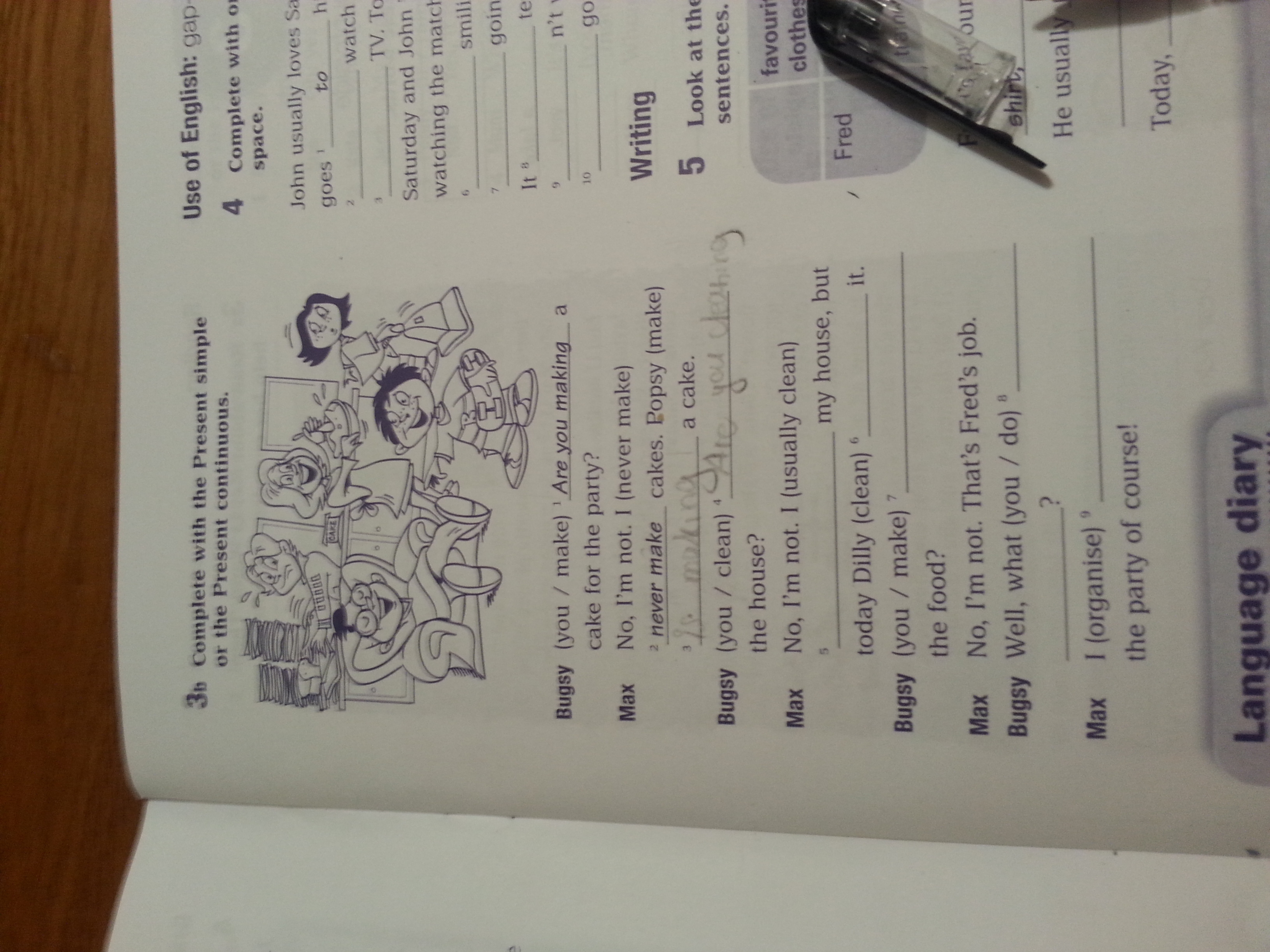 Are you making ;never make;is making ;are you cleaning ;I usually cleaning house ; Will clean; Do you making ; do you doing ; I am organising.