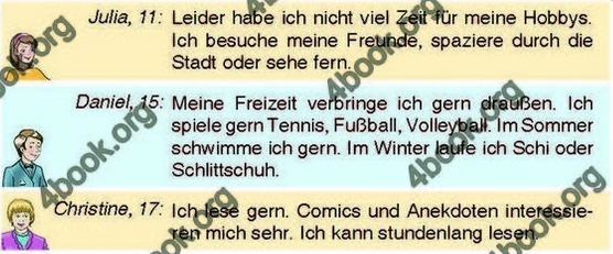 Моё свободное время я провожу активно. Я играю в тенис, футбол, волейбол. Летом я люблю плавать. Зимой - катяться на лыжах или коньках