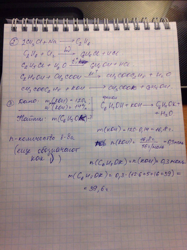 2. Напишите уравнения реакций для осуществления превращений: СН3Cl → С2Н6→ С2Н5Сl→ С2Н5ОН→ СН3 -СОО-С2Н5→ СН3 -СООK