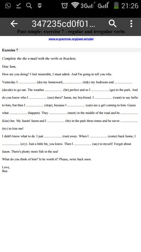did, tidied, decided, was , went, saw, wanted, stopped, could, happened, met, kissed, have been, has never tried, ran, came, cried, said