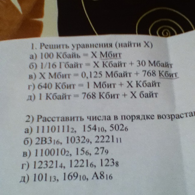 2) 1/16 Гбайт = Х Кбайт + 30 Мбайт