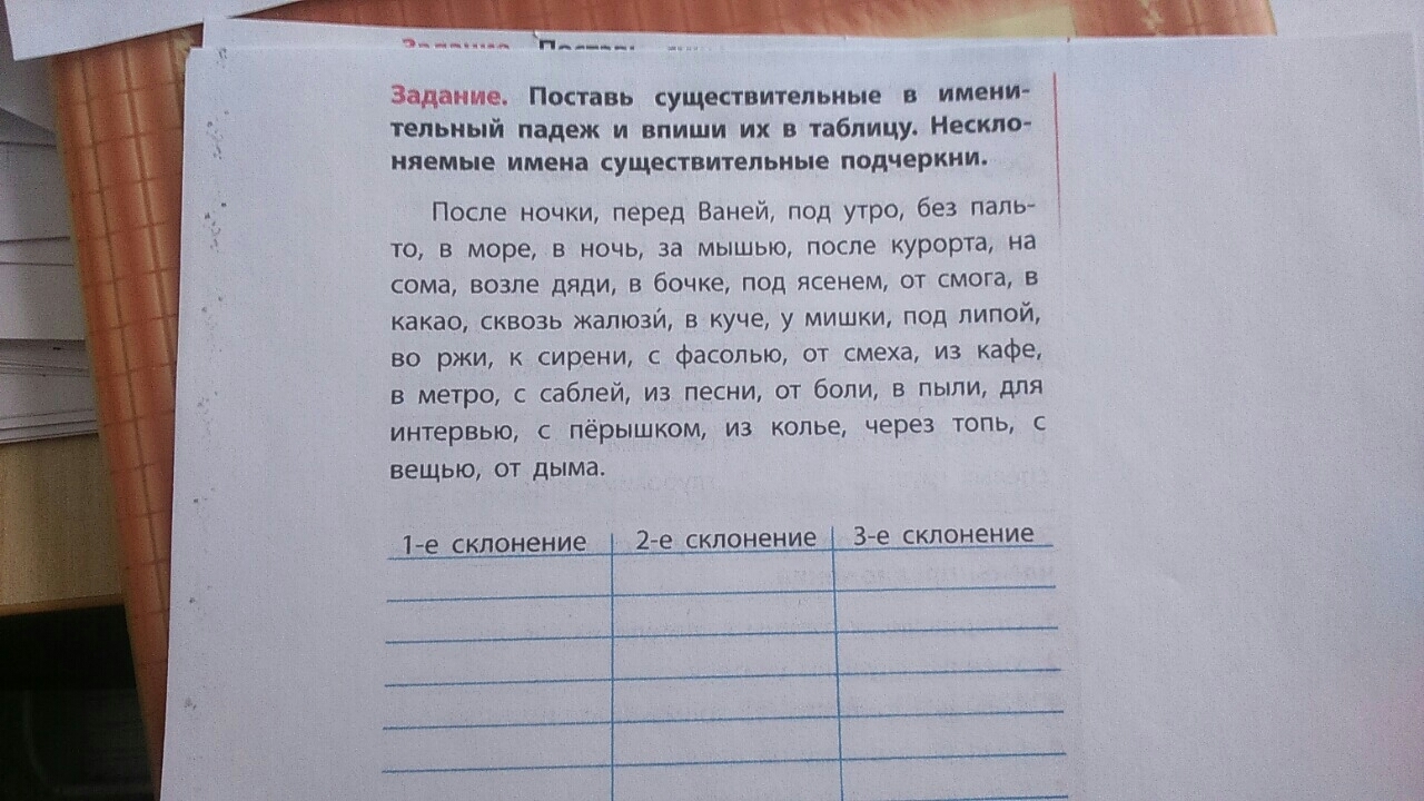1 склонение - ночка, Ваня, дядя, бочка, куча, мишка, липа,сабля, песня.