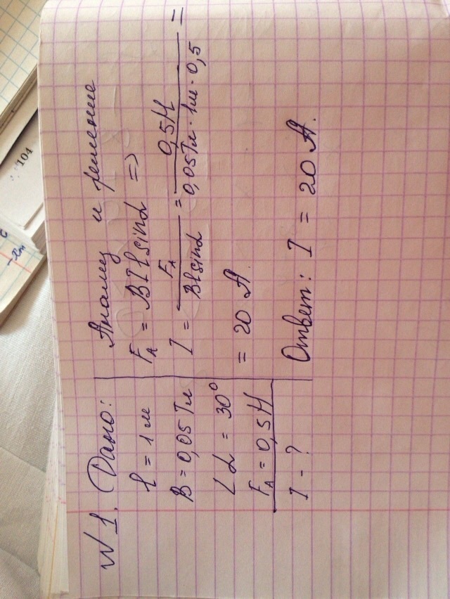 составляет с вектором индукции угол 30˚. Какой ток нужно