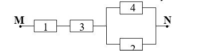 1. Пусть события A1, A2, A3, A4 состоят в том, что приборы 1, 2, 3, 4 находятся в рабочем состоянии. Написать выражение для события B, обозначающего, что между точками M и N протекает ток: