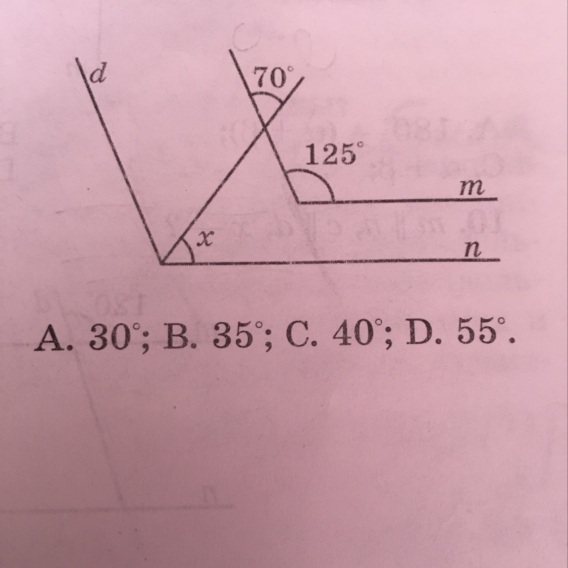 180°-(55°+70°) = 180°-125°=55°
