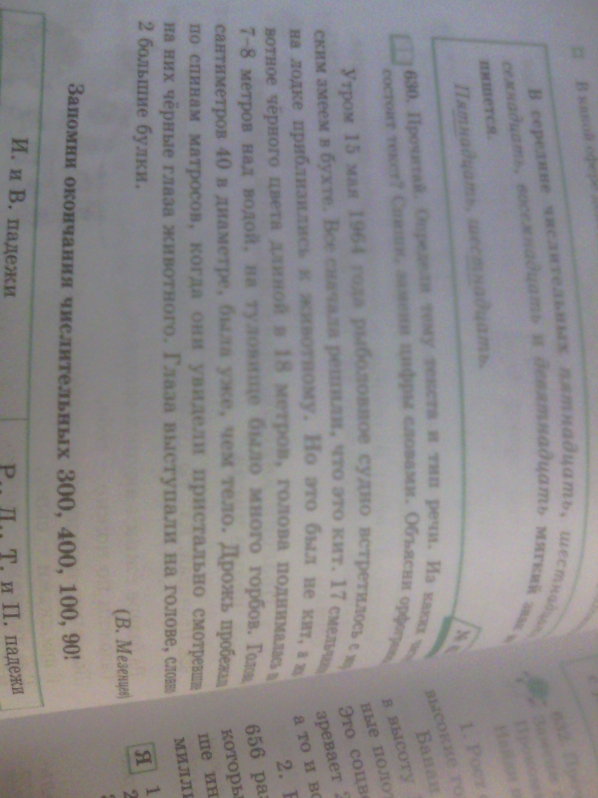 Тип речи: описание. Пятнадцатого мая, тысяча девятьсот шестьдесят четвёртого года, семнадцать смельчаков, восемнадцать метров, семь-восемь метров, сантиметров сорок, словно две большие булки.