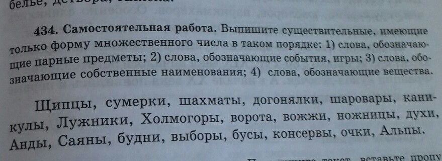 1. Щипцы, шаровары, ворота, вожжи, ножницы, очки