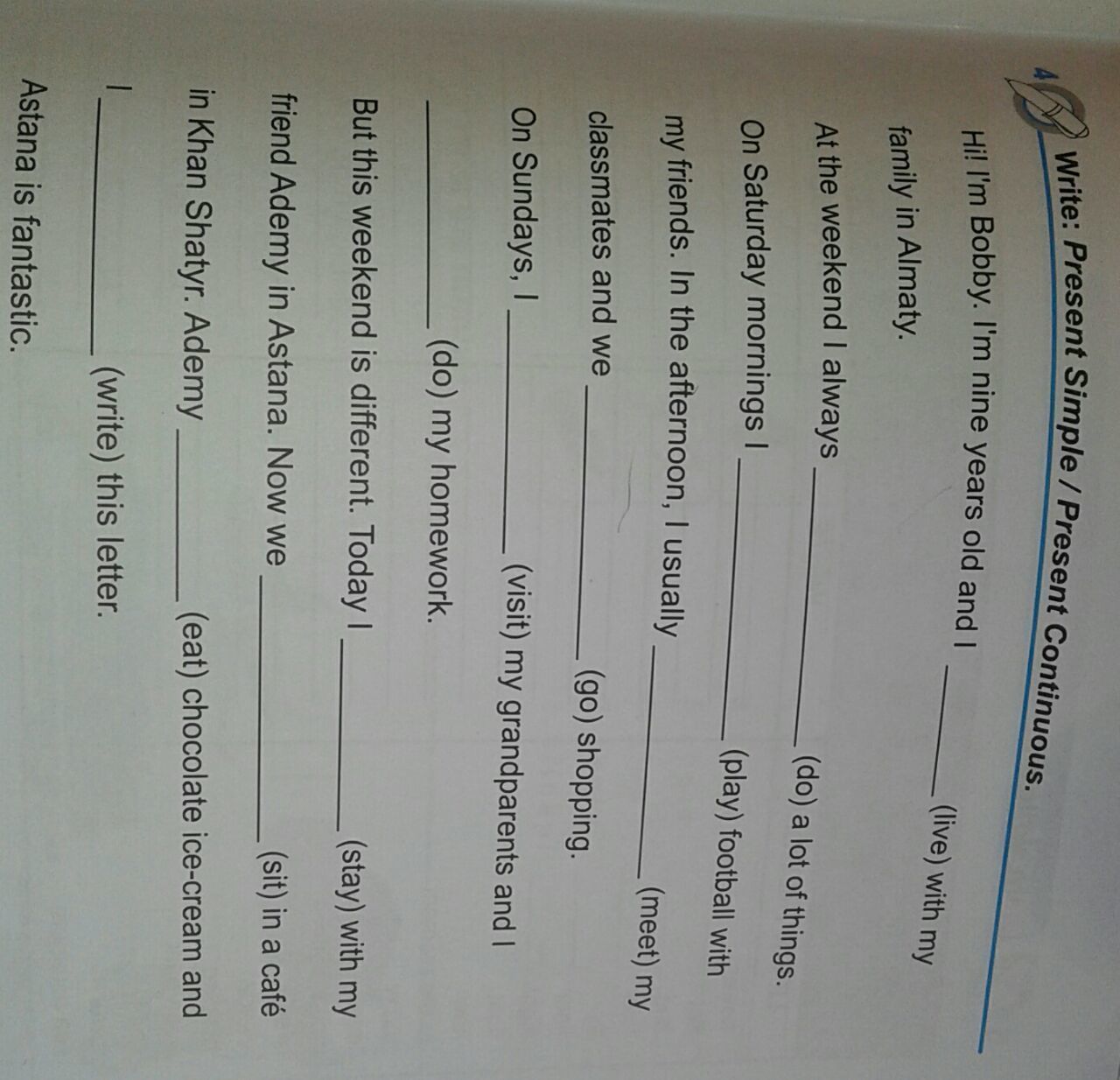 1 live 2 do 3 play 4 meet 5 go 6 visit 7 do 8 am staying 9 are sitting 10 is eating 11 am writing