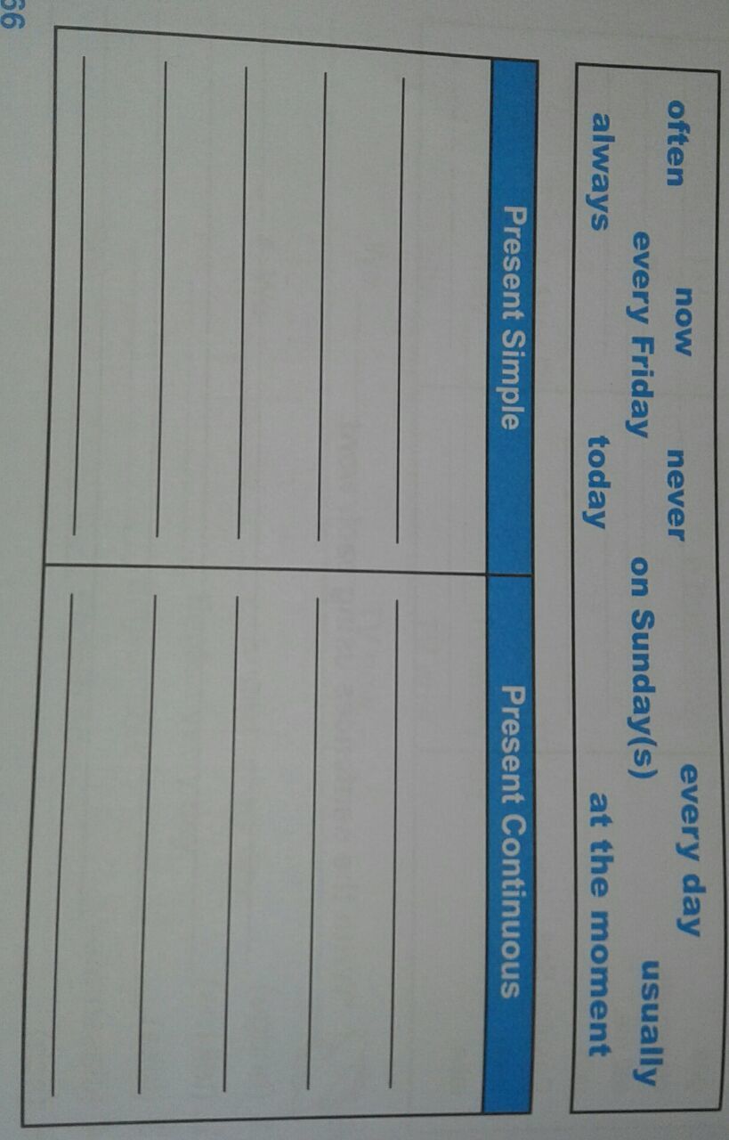 Present simple : often, always, every Friday, never, usually on Sundays m every day