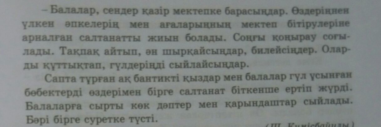 Дети вы сейчас пойдёте в школу. Вашим братом и сестрой будет мероприятия. Будет последний звонок. Будете стихи читать и пет, и танцевать. Их поздравите, и цветы дарите. Другой обзац не могу перевести