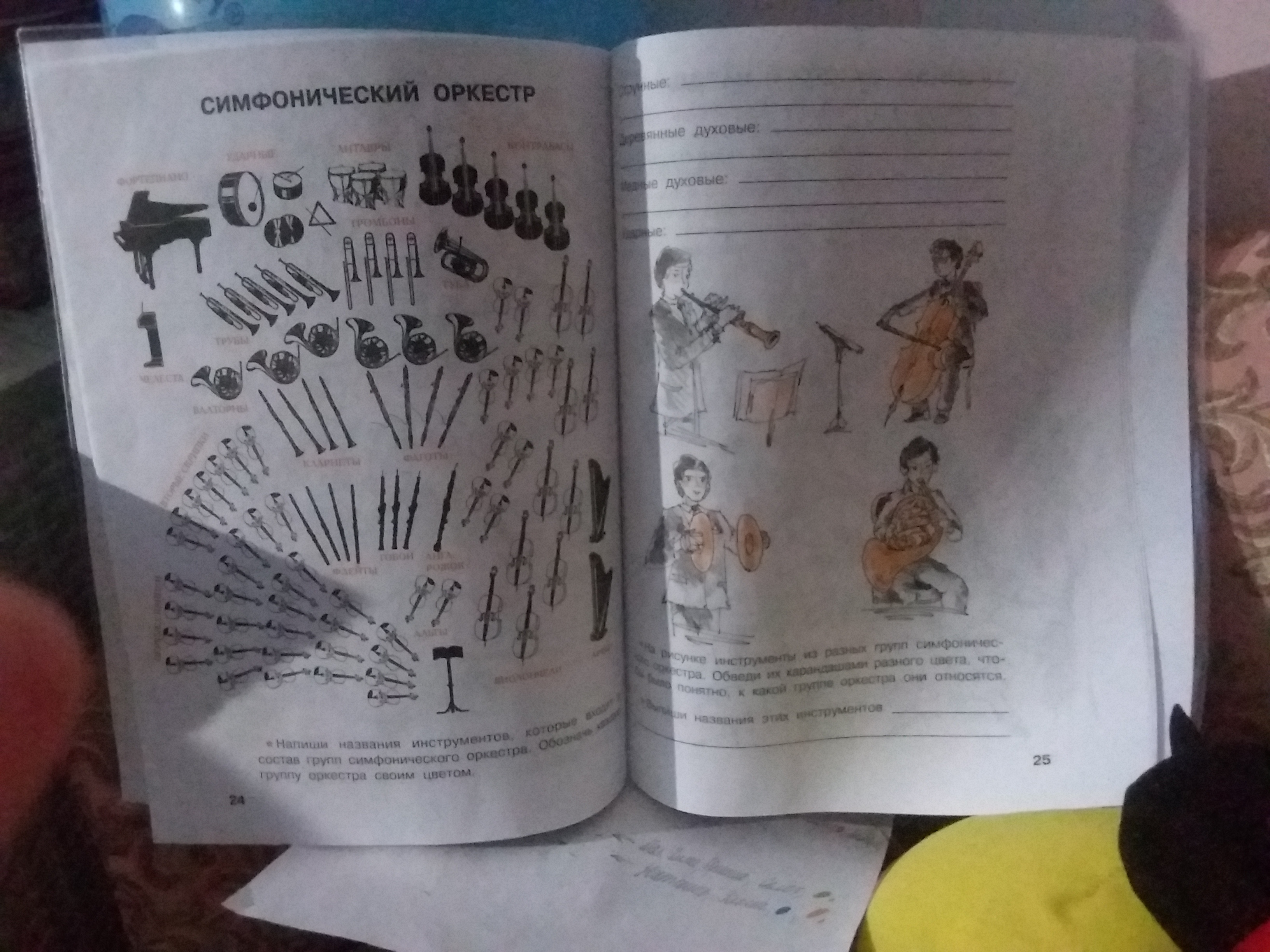 1. Струнные: скрипка(первая и вторая), альт, виолончель, контробас и арфа.