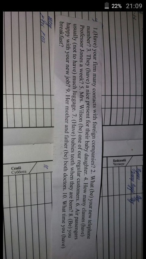 1) have 2) are 3) have 4) have 5) is 6) haven't 7)have 8) are 9) are 10) have.)