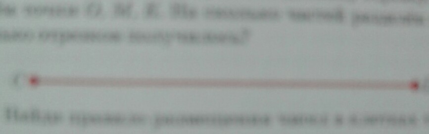 начерти отрезок CD равный данному отрезка. поставь на нем точки O, M, K. на сколько частей разделен отрезок? сколько отрезков получилось?
