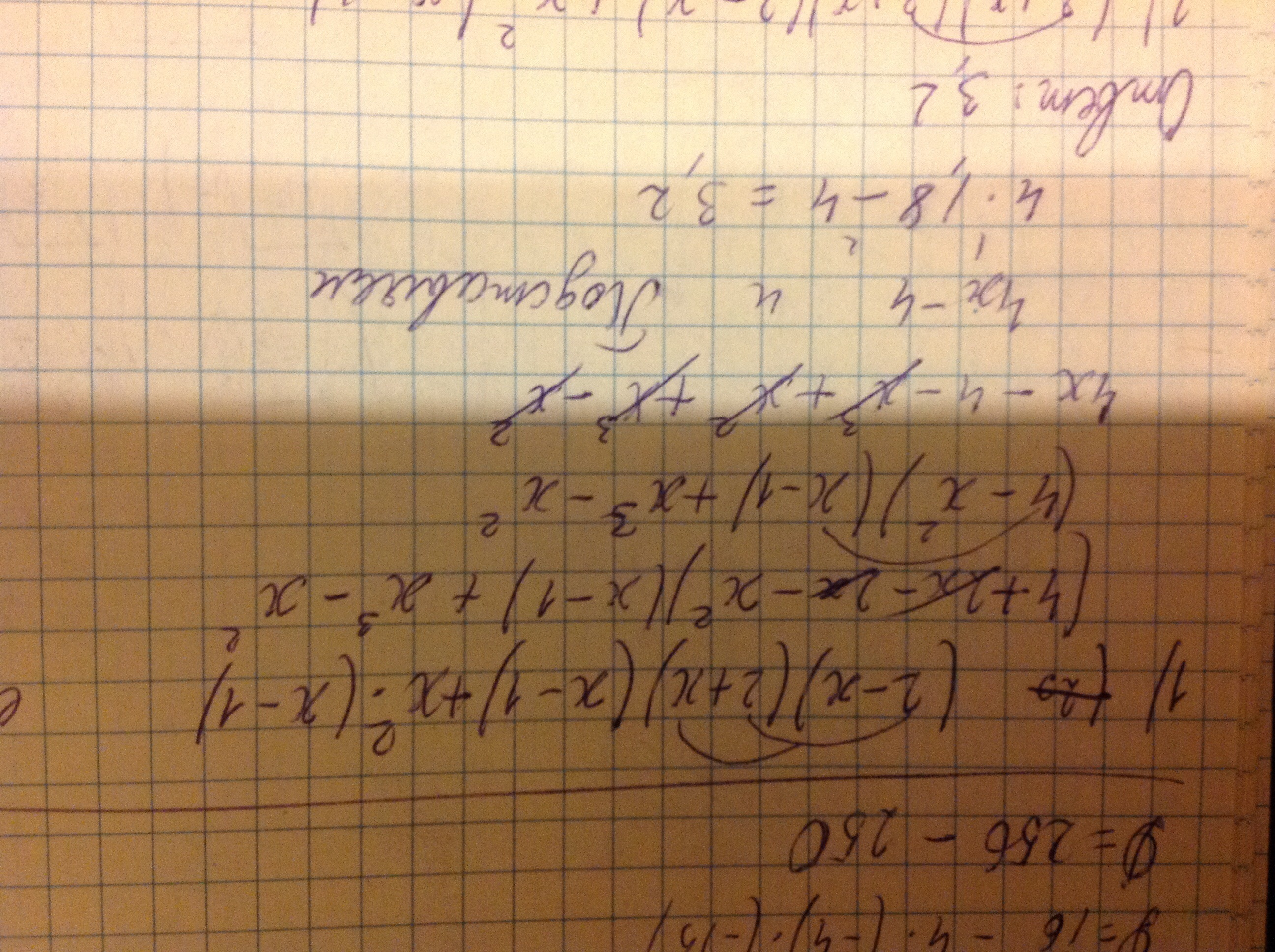 Помогите пожалуйста чем сможете с этими двумя примерами!!!!!!!!!!!!!!!!!!!!!!! БУДУ РАД ПОМОЩИ))) 1) (2-x)(2+x)(x-1)+x²(x-1) если х=1.8
