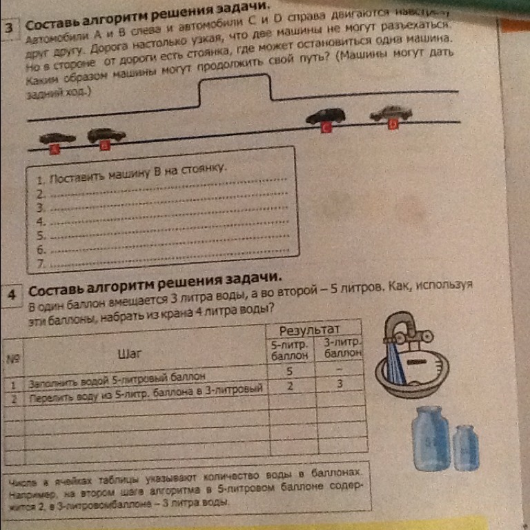 Получается в 5-тилитровом нет воды, в 3-хлитровом 2 литра.