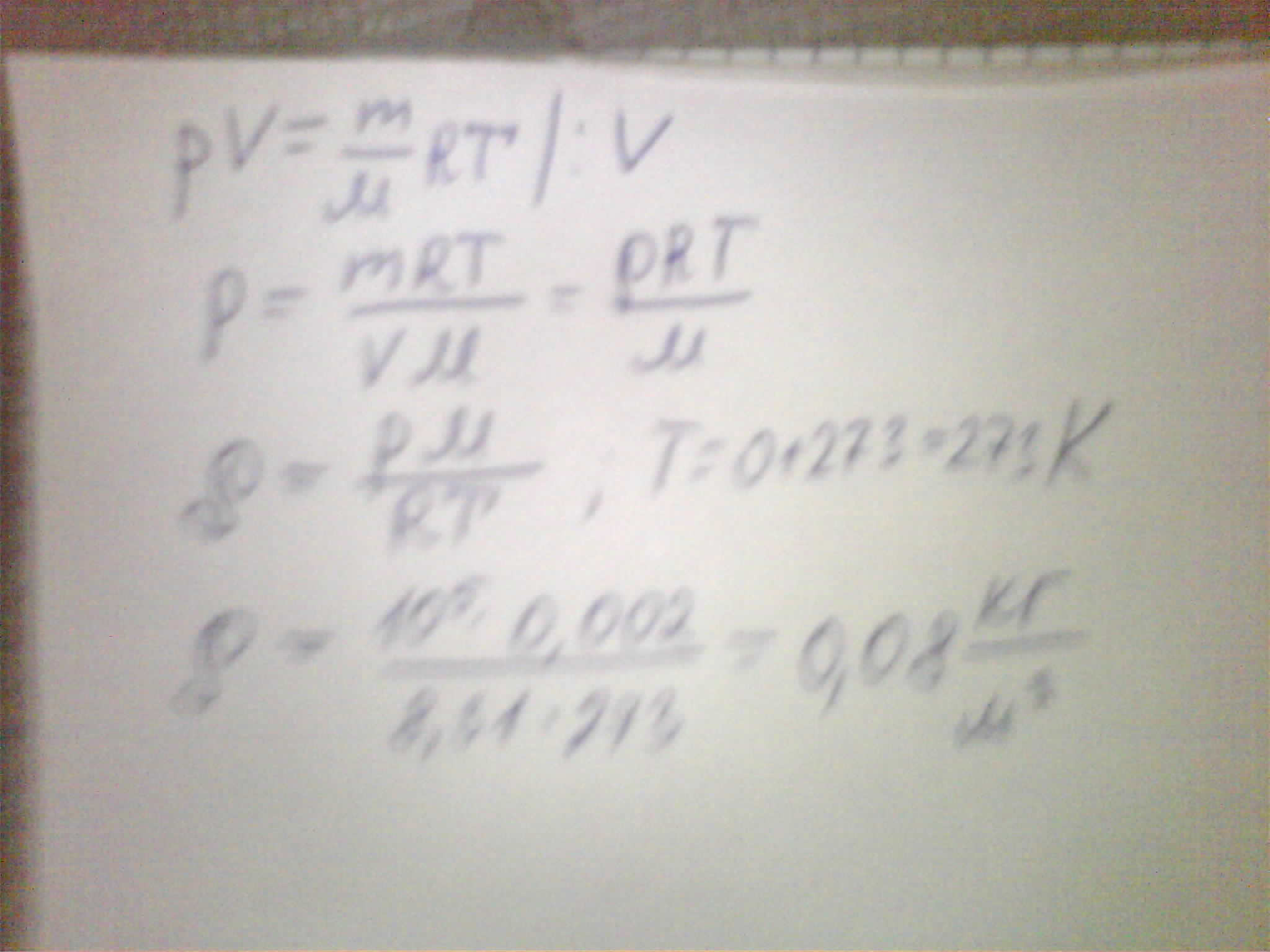 . Молярная масса водорода равна 0,002 кг/моль. При нормальных условиях (p0=100кПа; t0=0°С) плотность водорода равна: