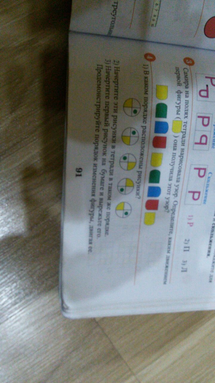 Ответ: каждый последующий рисунок вращается против часовой стрелки на один сегмент