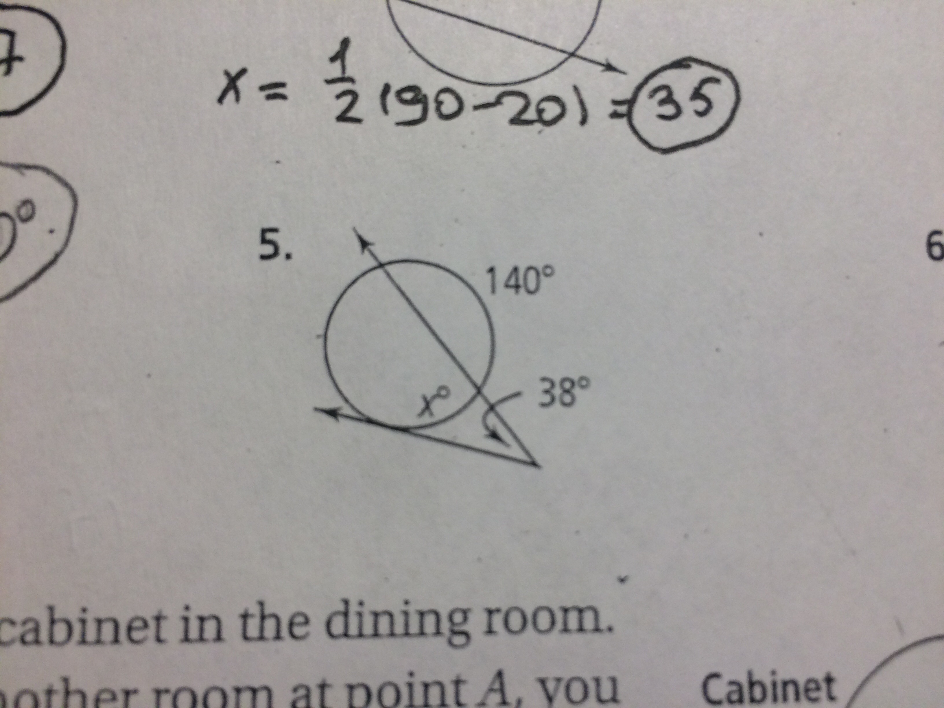 вневписанный угол в окружность и касающийся ее равен разности большей дуги, образованной таким образом, и меньшей дуги, образованной таким образом, деленной на два.