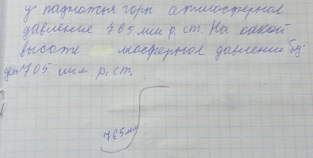 765-705=60 мм давление упало, 60*10=600м высота горы