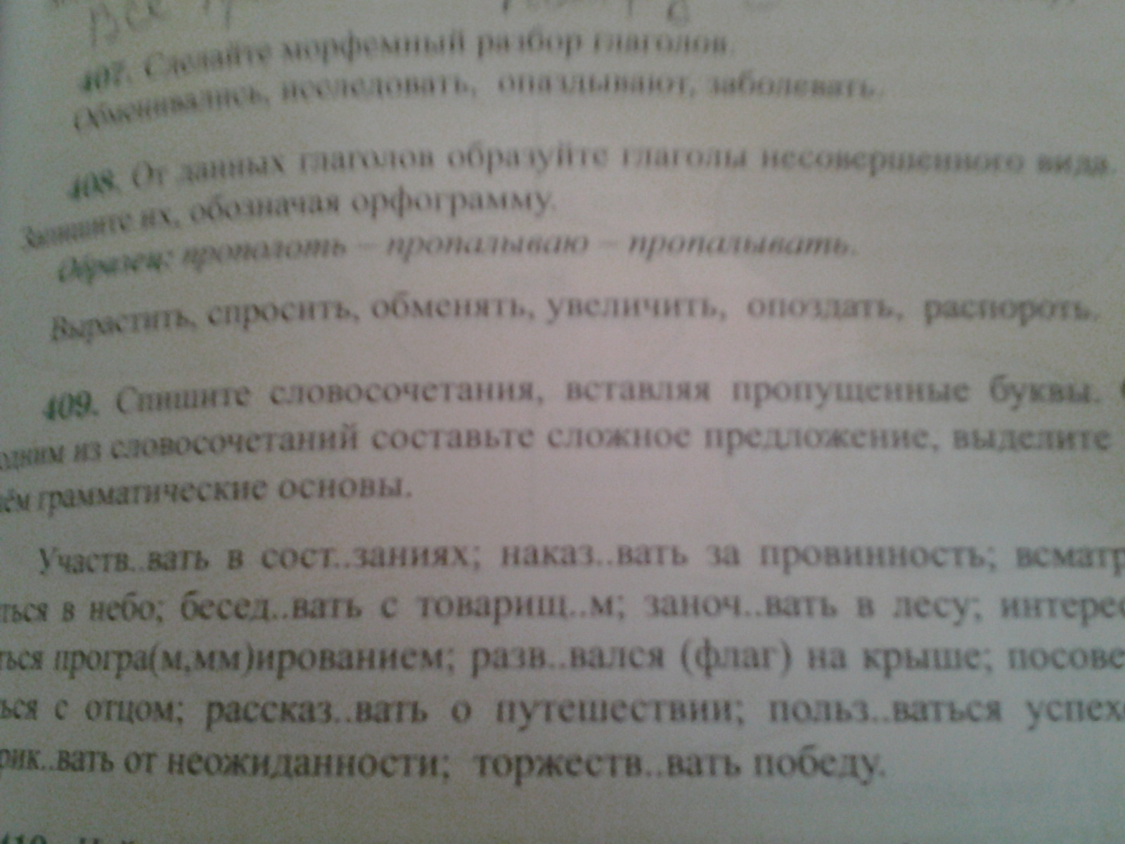 вырастить-выращиваю,спросить-спрашиваю,обменять-обмениваю,увеличить-увеличиваю,опоздать-опаздываю,распороть-распарываю.