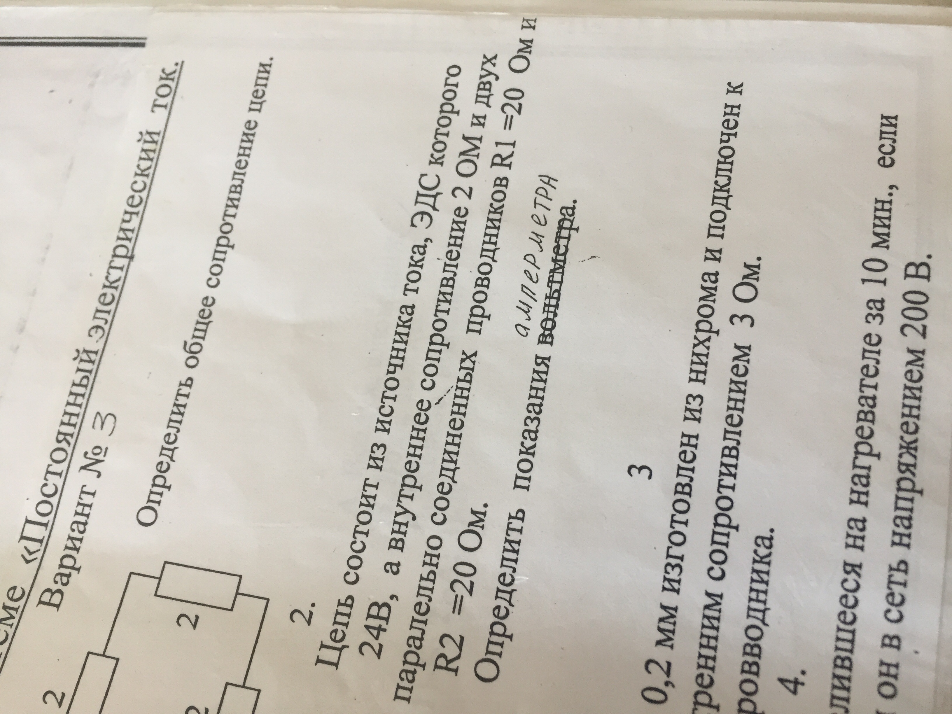 2)Используем метод эквивалентных преобразований и находим общее сопротивление 2х резисторов подключенных параллельно. 20*2020+20=10 ОМ.