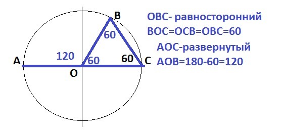 ∠АОВ = 180° - 60° = 120° - ОТВЕТ
