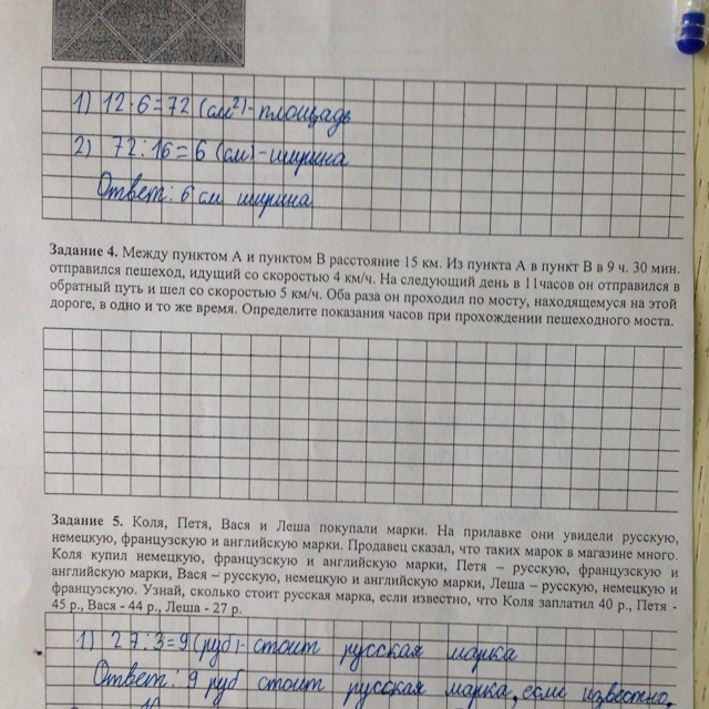 Пусть х это время, которое будет на часах. Тогда из А до моста пешеход шёл (х-9,5) ч, а из В (х-11) ч. В сумме от А до моста и от В до моста 15 км. Имеем уравнение: