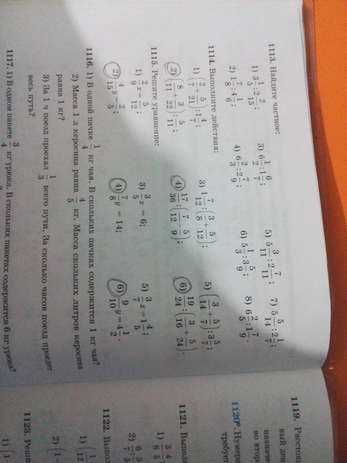 6) 19/24 : (3/16+5/24)=38/48: (12/48+10/48)=38/48: 22/48=19/11=1 8/11