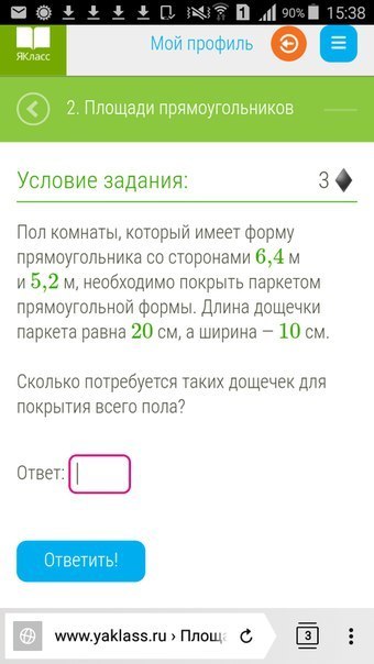 640*520=332800см площадь одной дощечки паркета равна 10*20=200, 332800:200=1664
