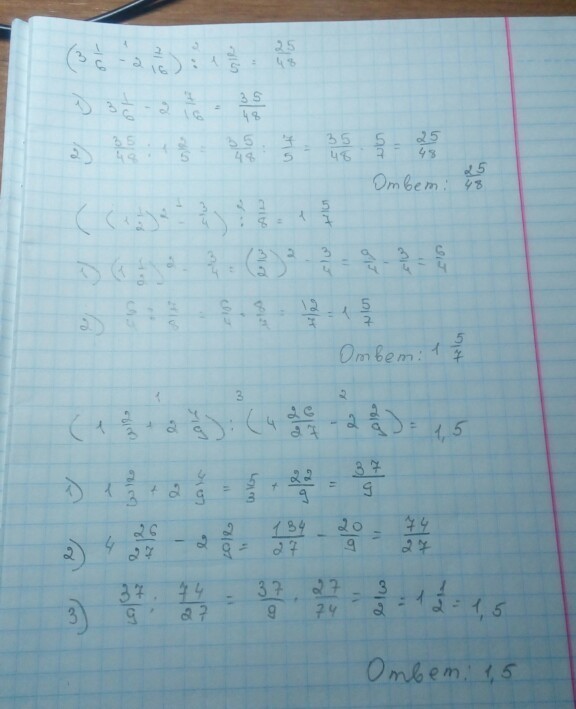 (3целых 1/6-2целых 7/16 ) : 1 целая 2/5