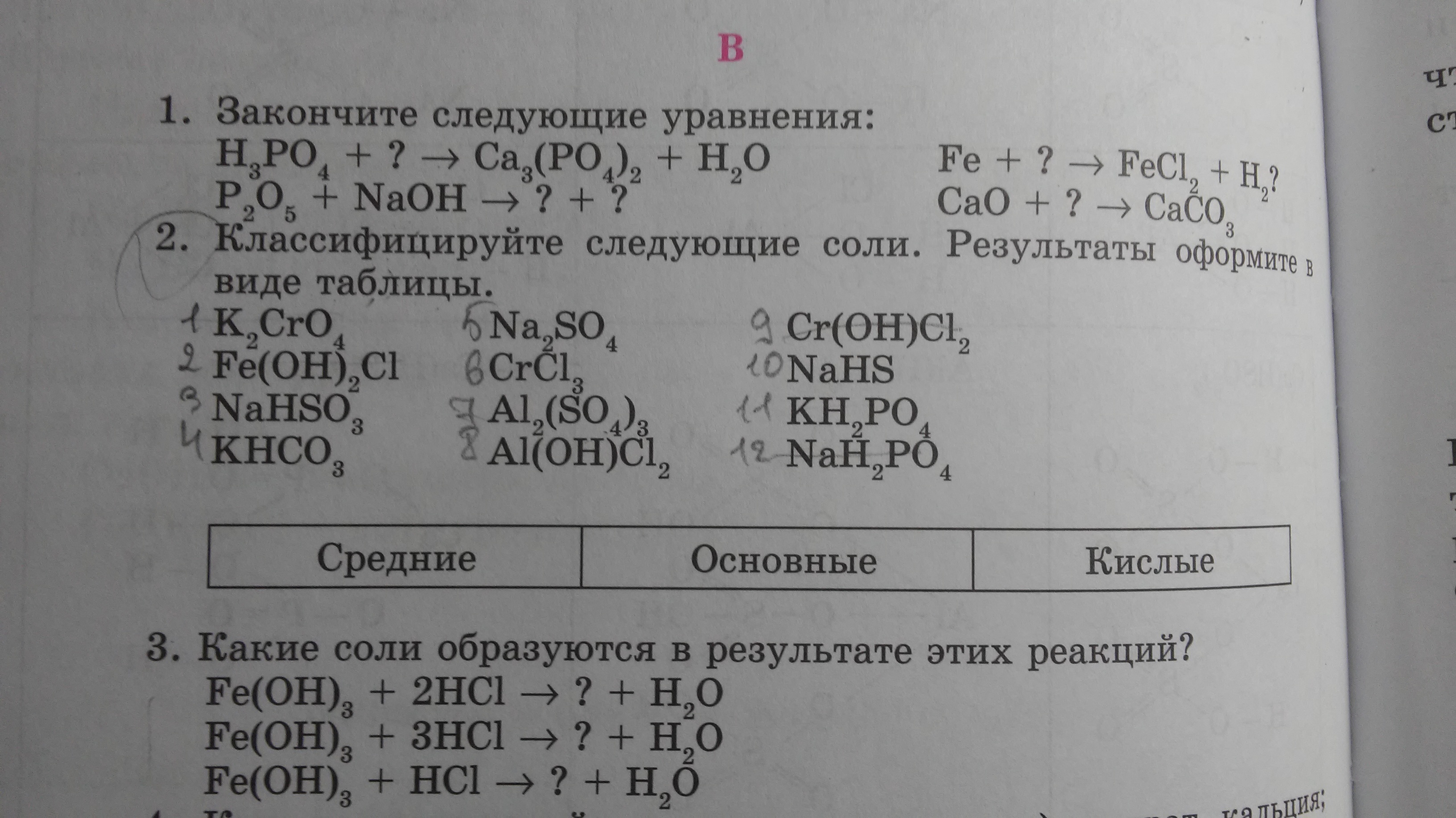 Помогите, пожалуйста, сделать второе задание. 'Классифицируйте следующие соли, результаты оформите в виде таблицы'