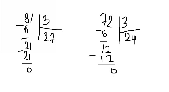 72:3=7:3=2 и 1 остат 12:3=4=24