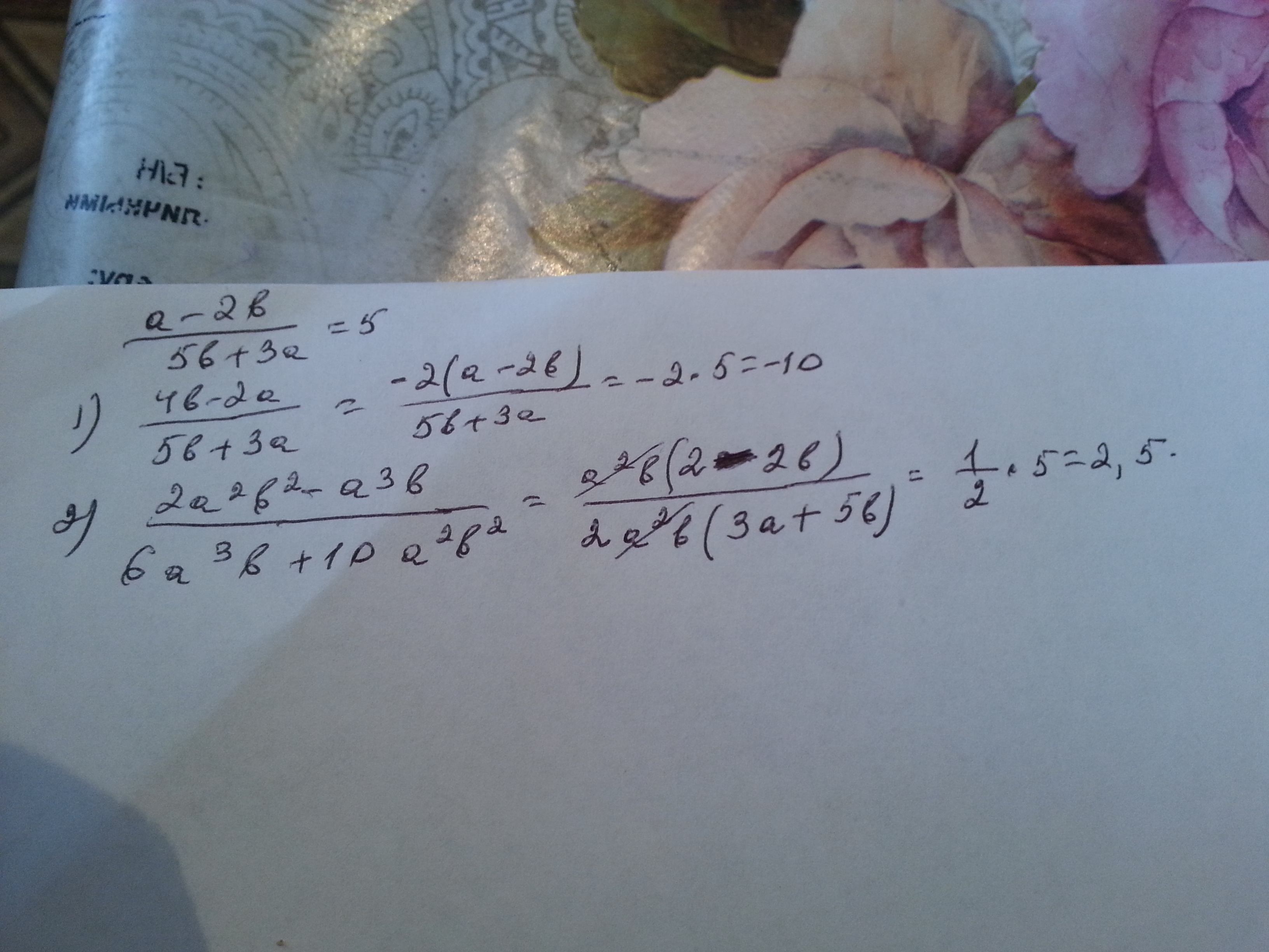 2) 2a^2b^2-a^3b/6a^3b+10a^2b^2