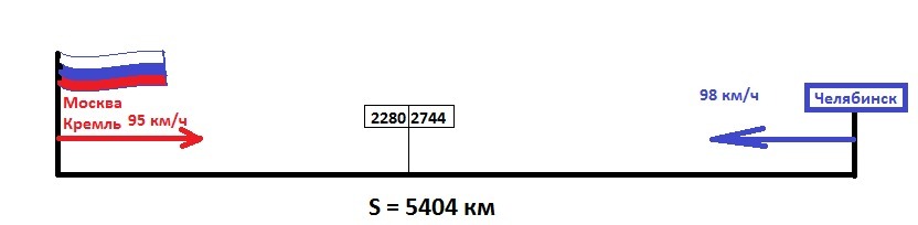 Из Москвы И Иркутска вышли одновременно навстречу друг другу два скорых поезда. Скорость одного - 95км/ч, скорость другого - 98км/ч. Через сколько часов они встретятся, если расстояние между городами равно 5404 км?
