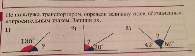 1). 180°-135°= 45° т.к. на рисунке изображен развернутый угол, который всегда равняется 180°