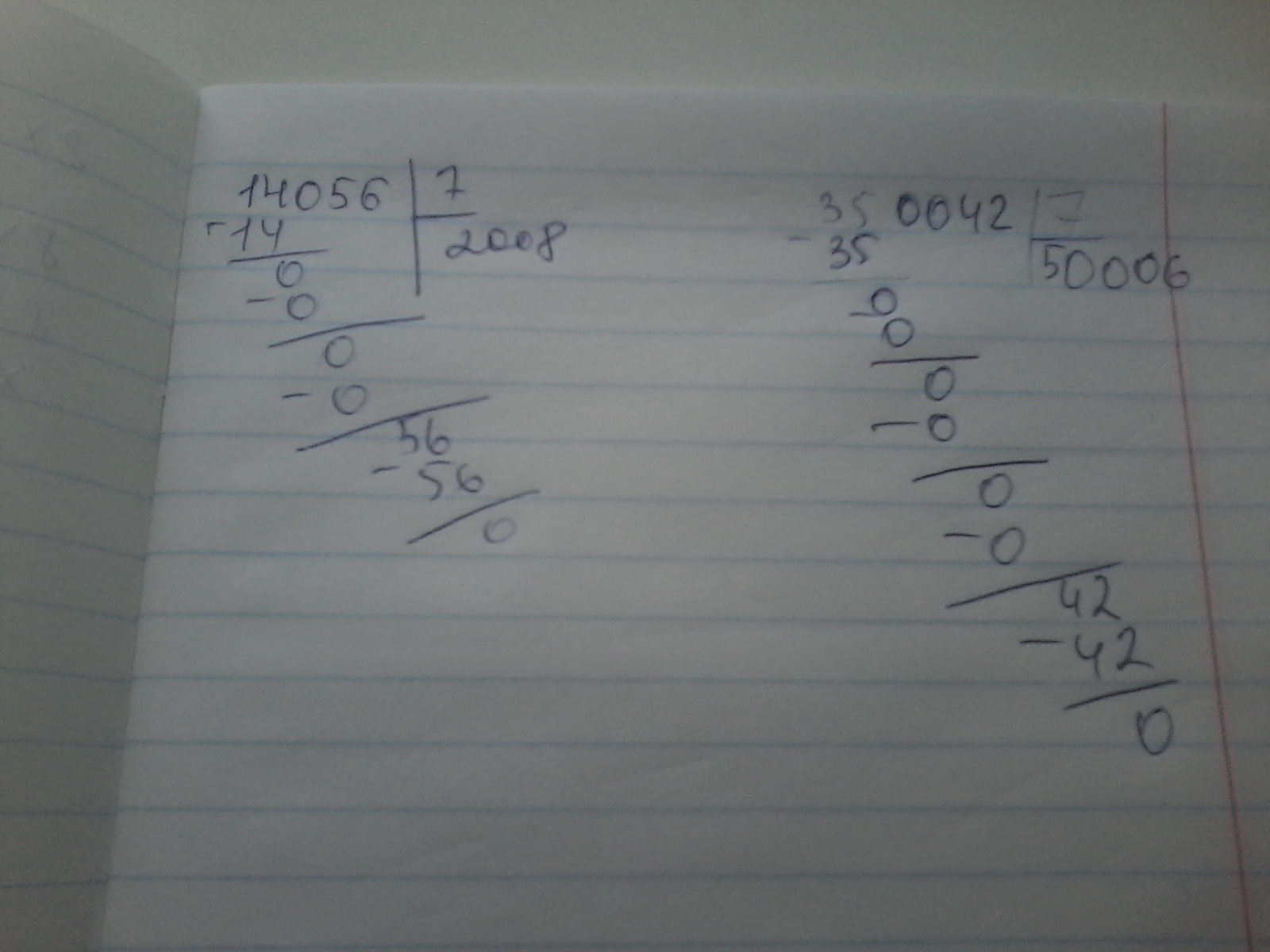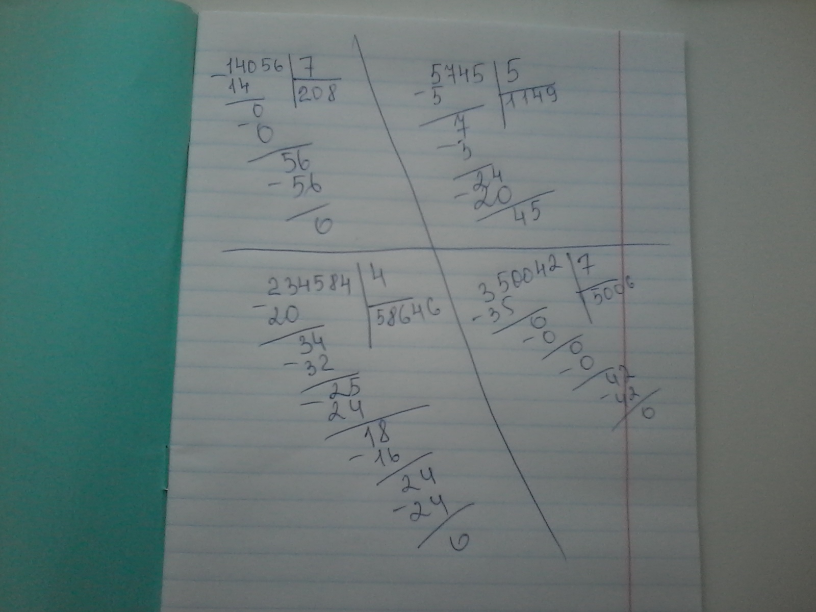найдти частное записав решение столбиком 14056÷7. 5745÷5. 234584÷4. 350042÷7 помогите пожалуйста