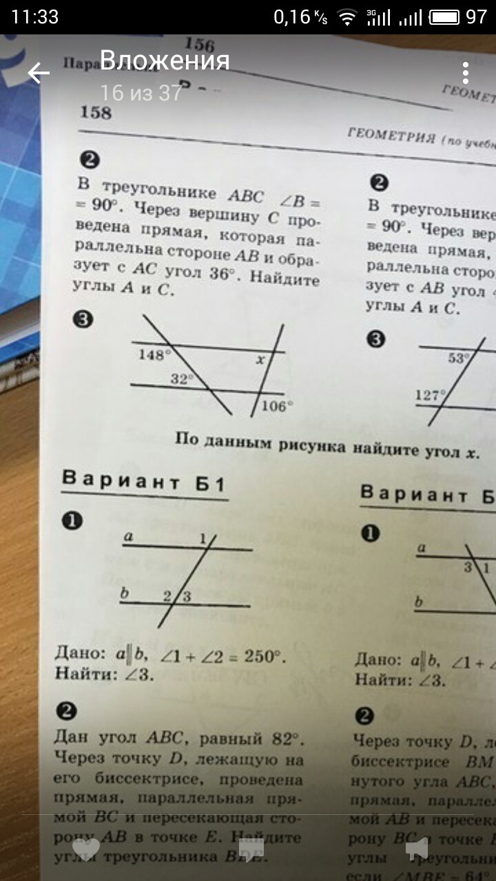 Тогда делаем вывод, что прямые параллельны. Расссмотрим угол в 106 градусов, вертикальный ему будет тоже 106 градусов. Тогда угол х будет равен 180 - 106 = 74 градуса. ( тоже как внутренние односторонние углы)
