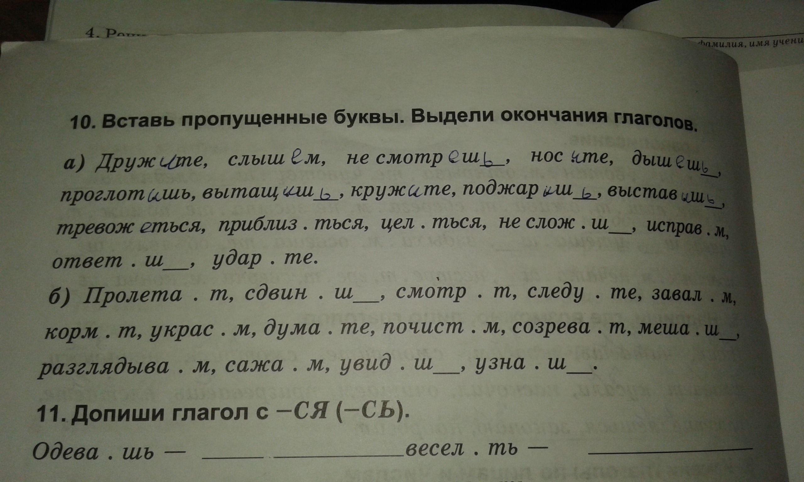 б)пролетает,сдвинишь,смотрит,следуйте,кормит,украсим,думайте,почистим,созревает,мешаешь,разглядывем,сажаем,увидешь,узнаешь