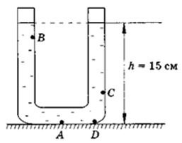 Для U-образной трубки, изображенной на рисунке 56, сравните давление жидкости: