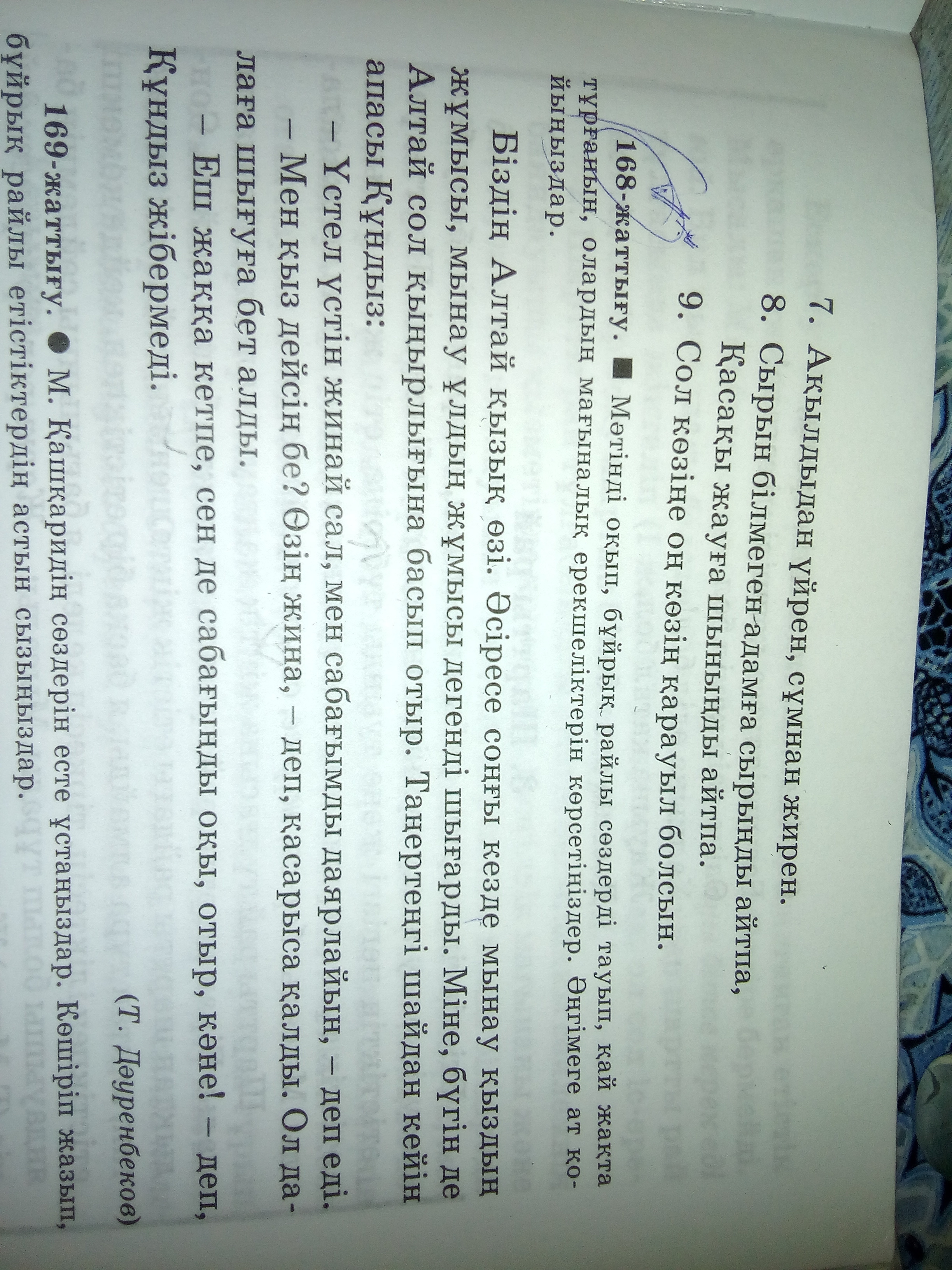 əңгіме аты:қызық алтай.Үстел үстін жинай. сал!,өзің жина ,еш жаққа кетпе сен спбағыңды оқы :бұйры р. сөздер