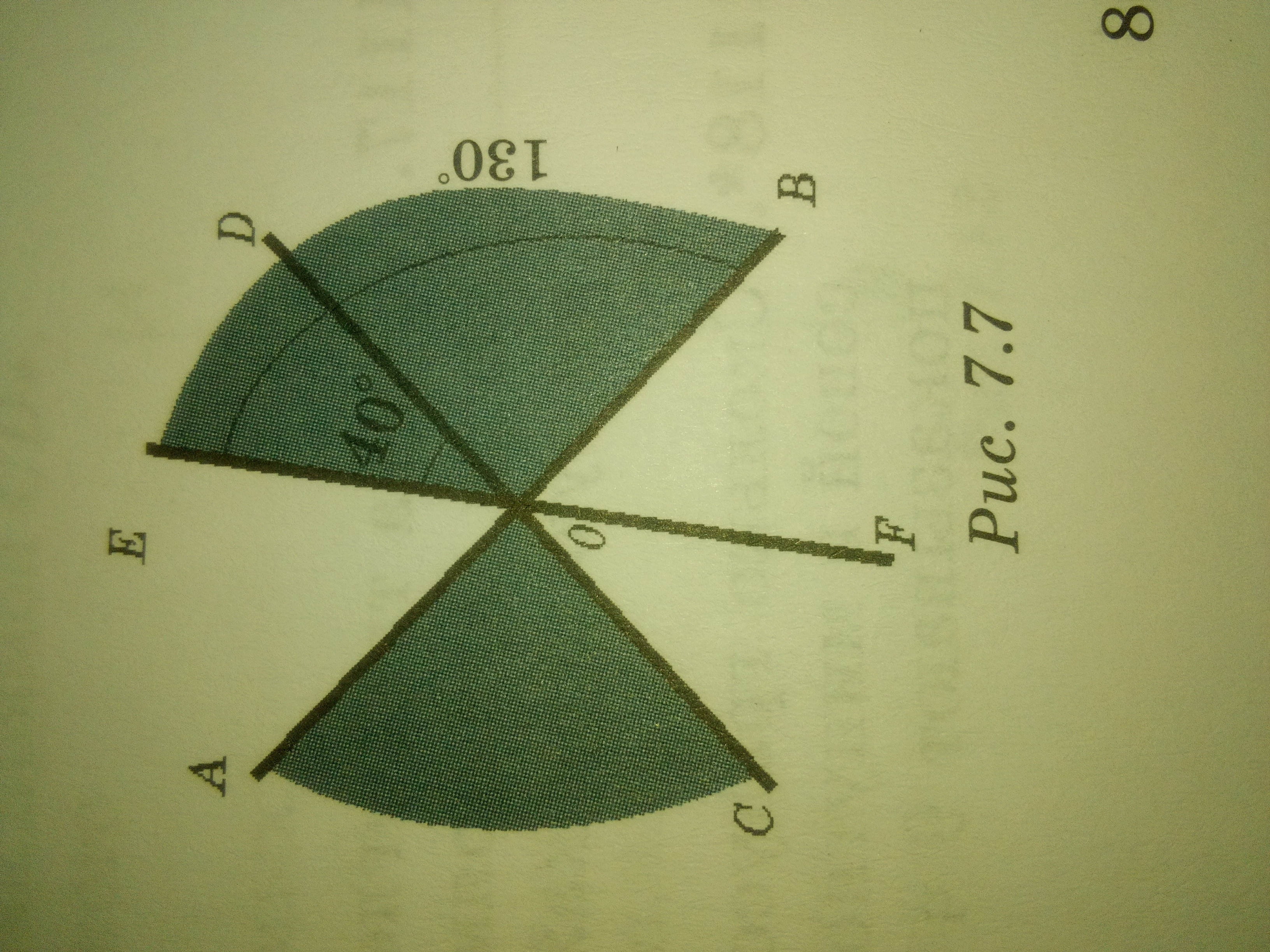 На рисунке 7.7 <EOD=40°; <EOB=130°. Найдите меру угла AOC.