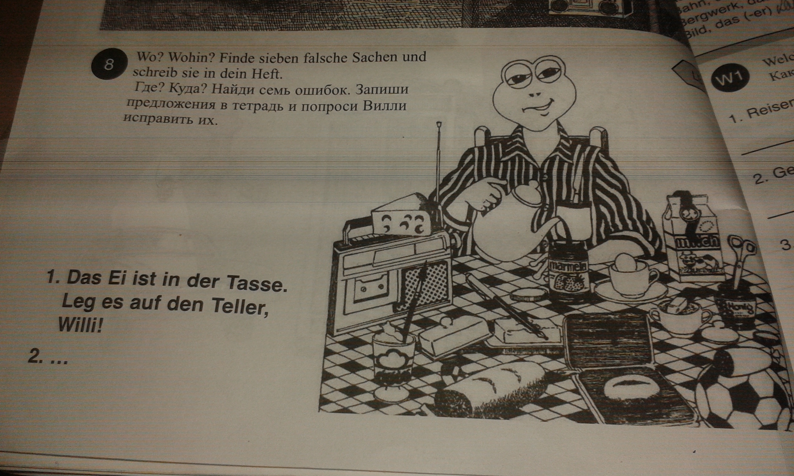 2)Der Käse ist auf dem Radio.Leg es auf den Teller,Willi!
