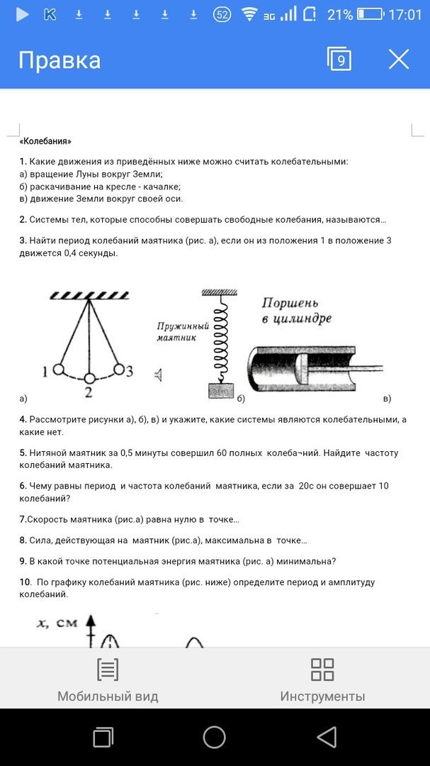 Скорость маятника (рис.а) равна нулю в точке 1 и 3