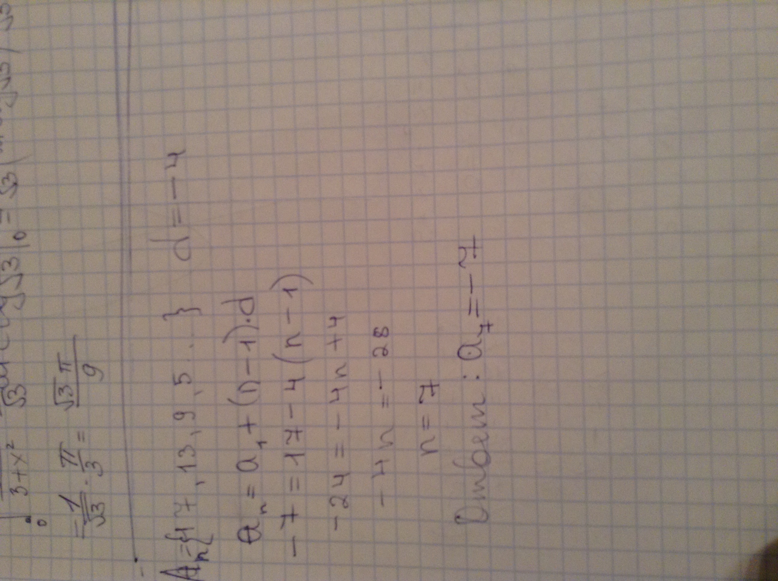 выписаны первые несколько членов арифметической прогрессии 17;13; 9; 5... Какое из следующих чисел есть среди членов этой прогресии?(ответ должен быть 3)